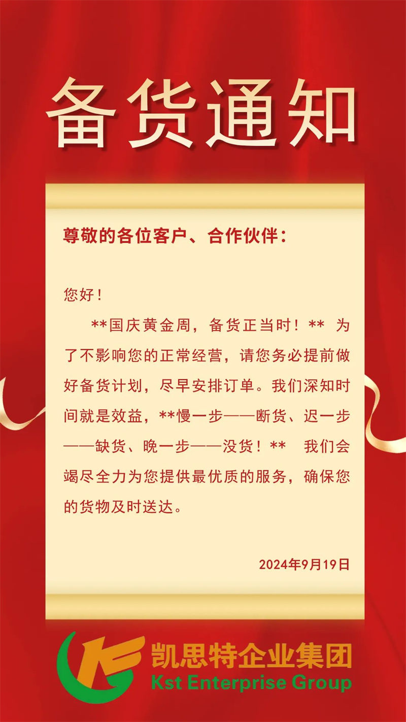 國慶備貨,刻不容緩!陜西凱思特企業(yè)集團2024年國慶放假備貨通知