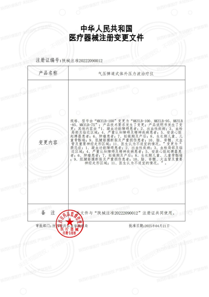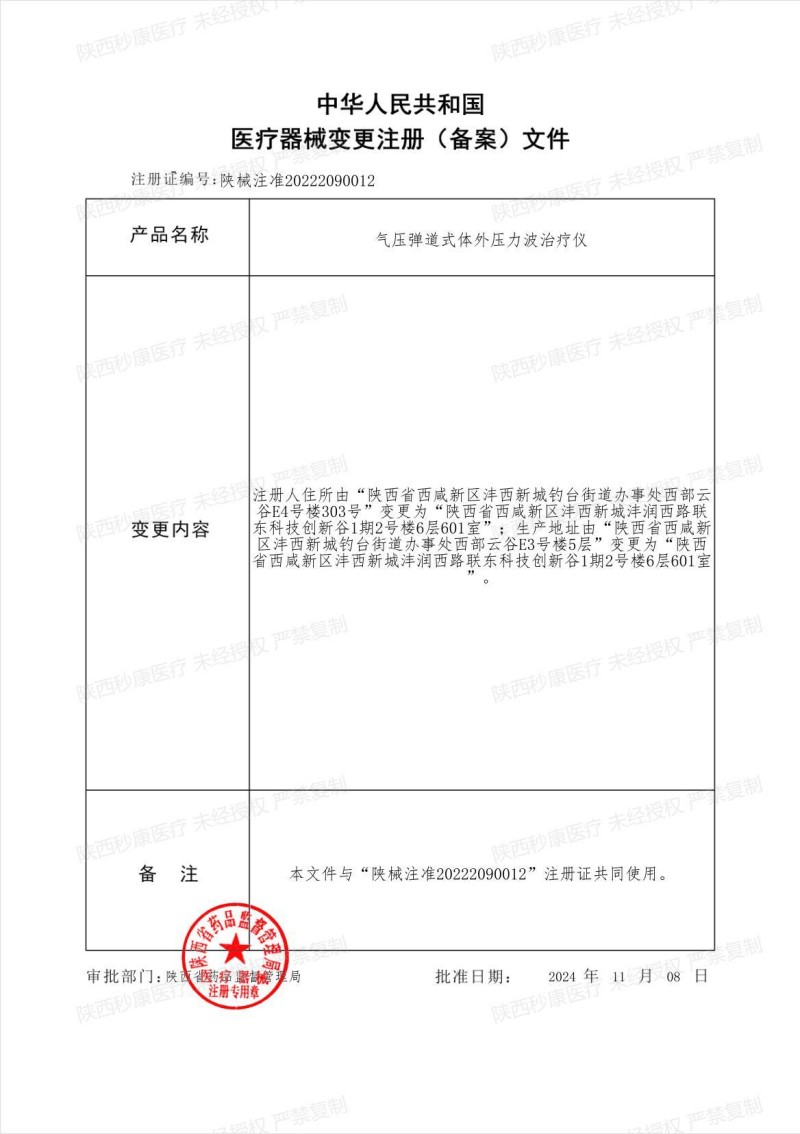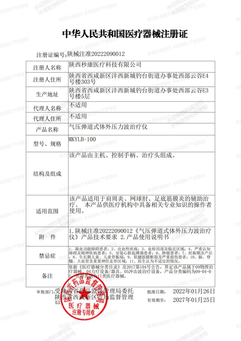 醫(yī)療器械注冊證編號:陜械注準20222090012